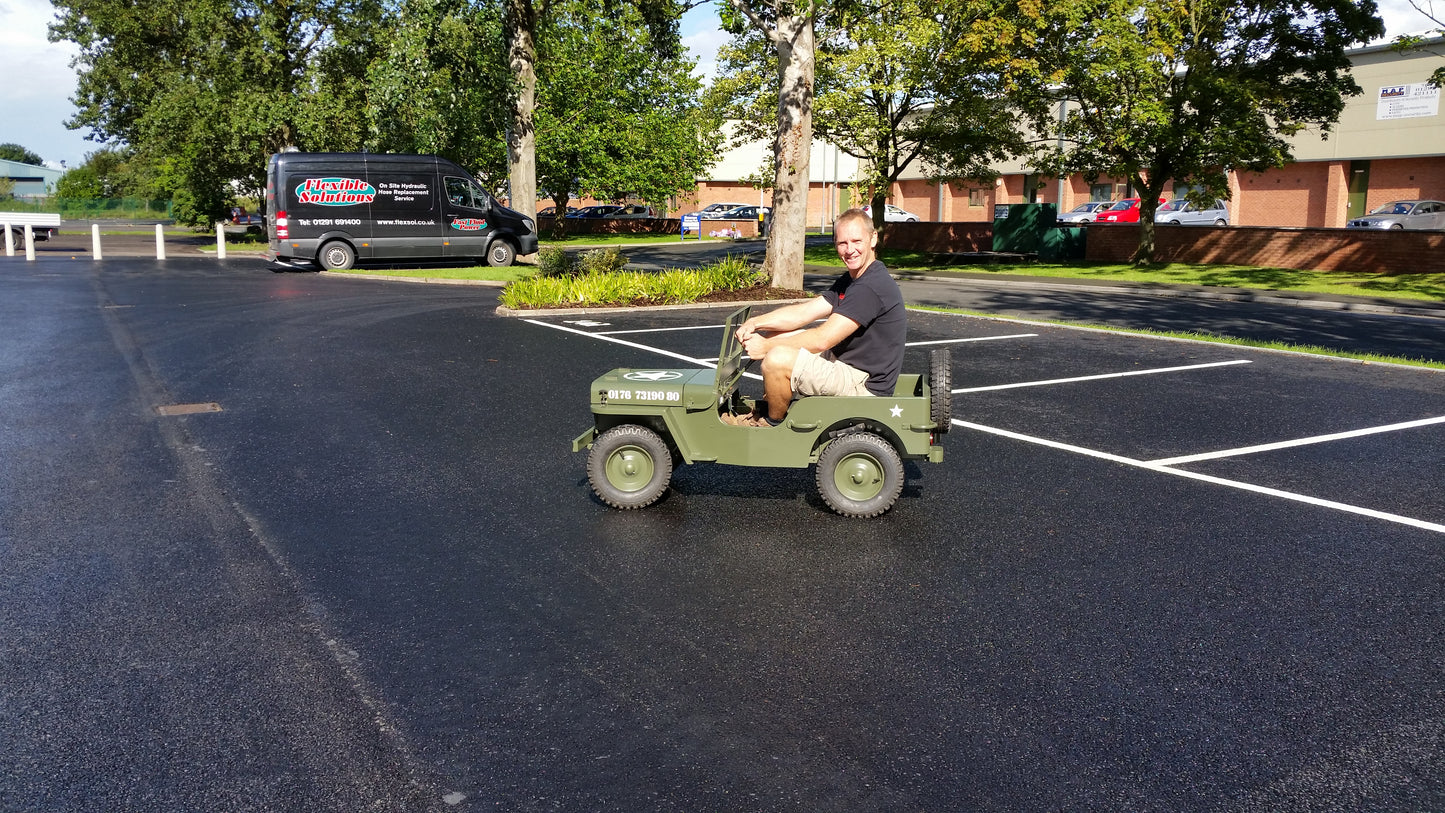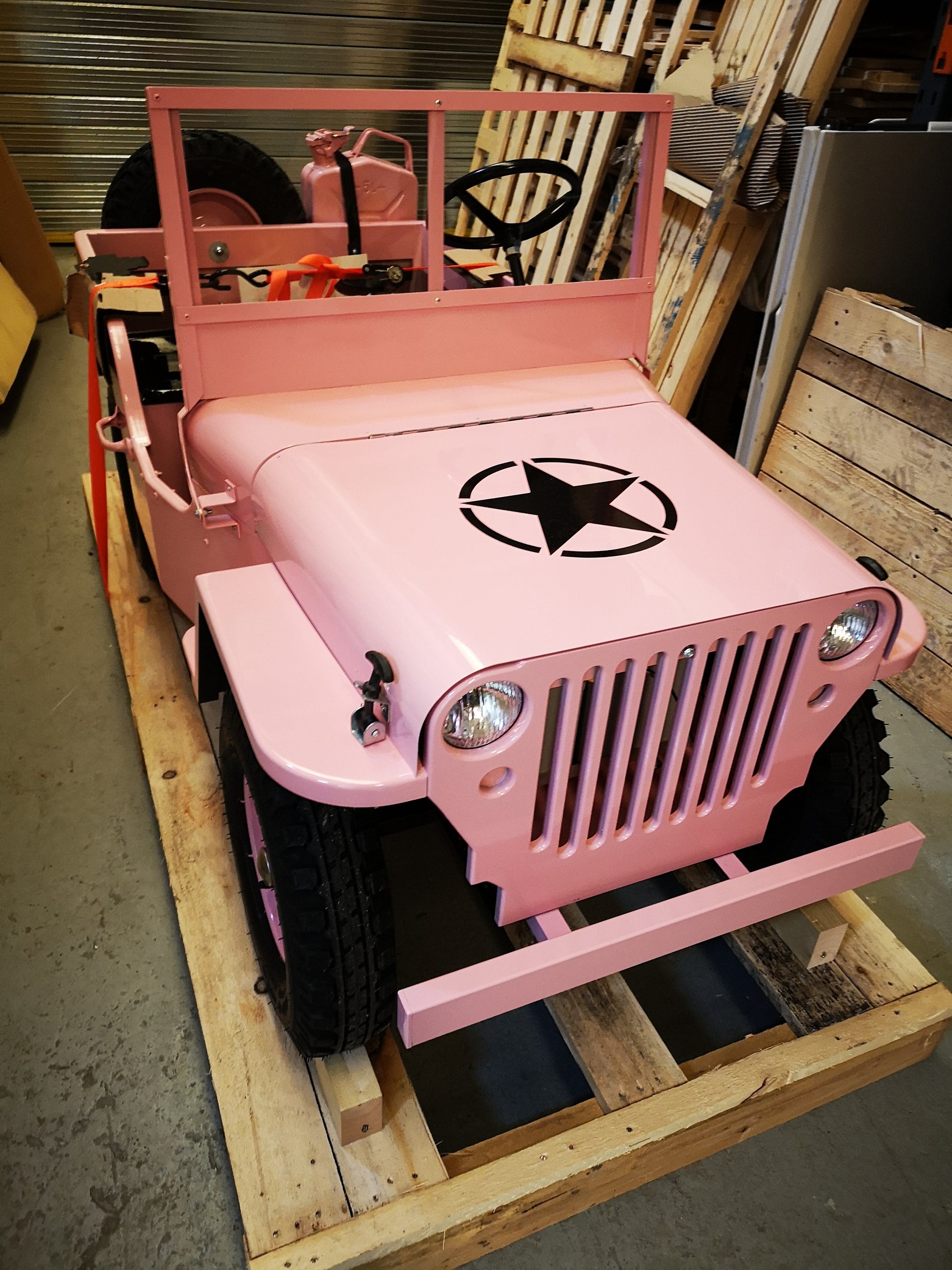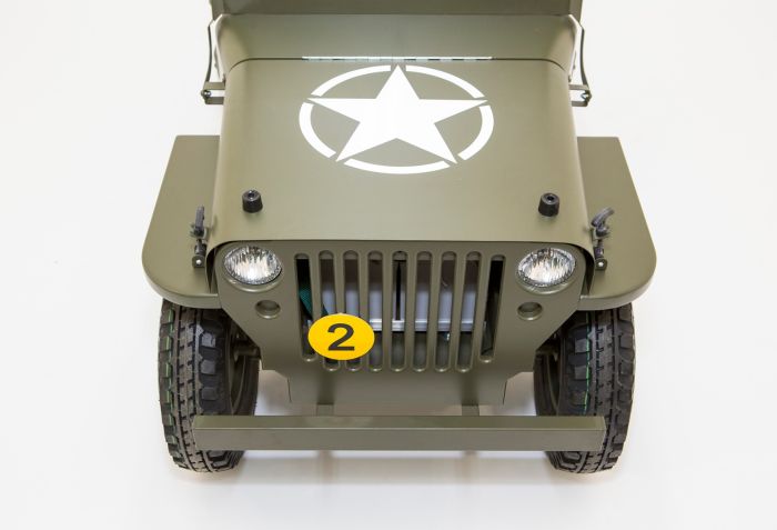 Your Toylander Army Jeep - MB43 will arrive fully built, painted and ready for action! Ready built cars include 24v motor, 2 batteries, charger, spare wheel, number plates (chosen by you) and choice of colours. 5mphr controlled throttle speed, lights and horn.
