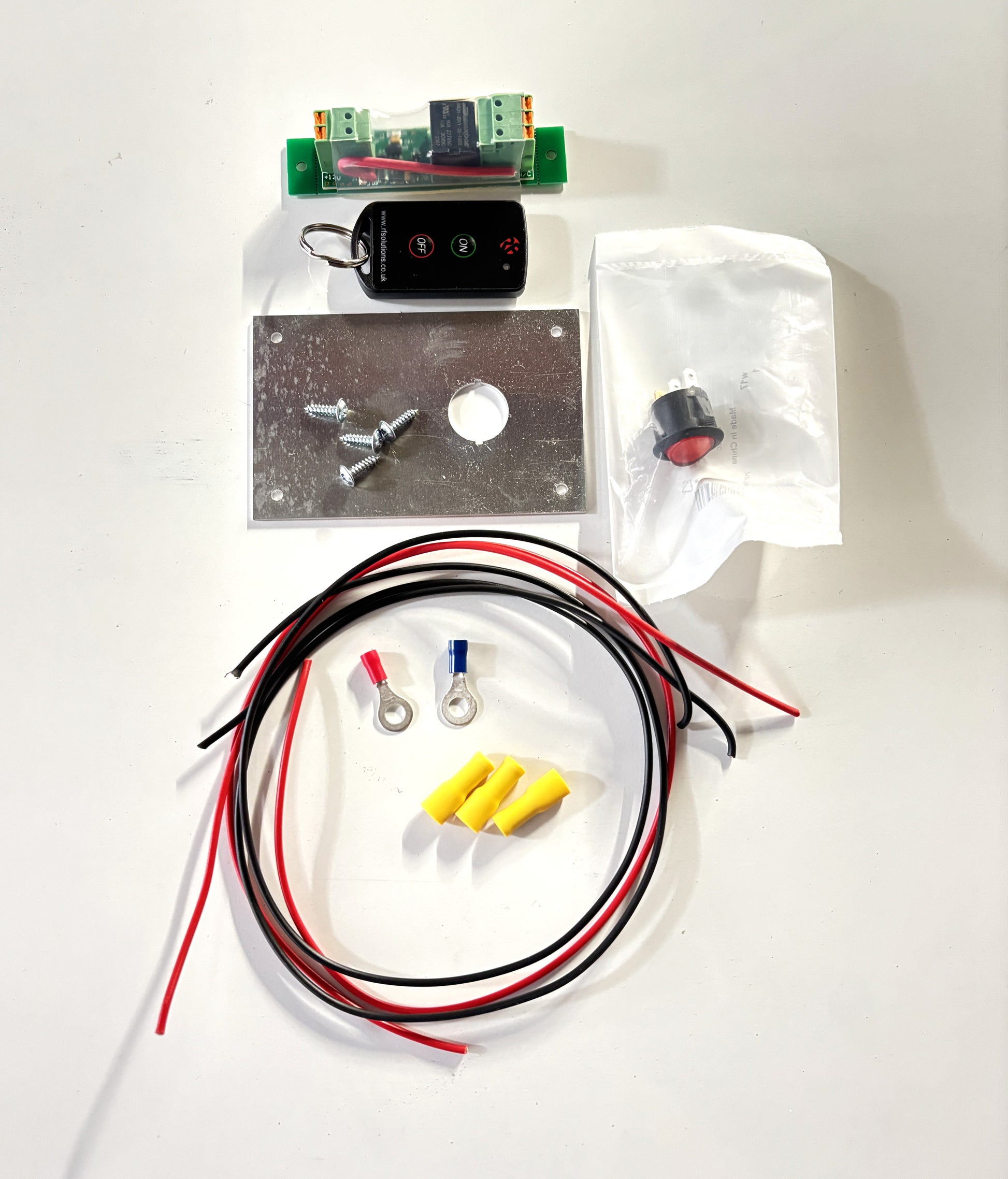 Once fitted this kit allows the Toylander to be stopped and started from approx. 500m with the click of a button on the remote key fob switch. Includes; receiver unit, On/Off Key fob, LED receiver isolator switch, LED switch mounting plate plus wiring.