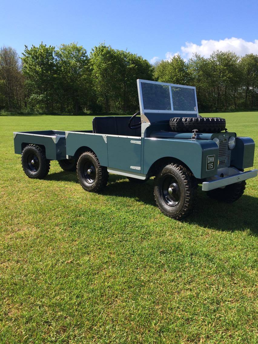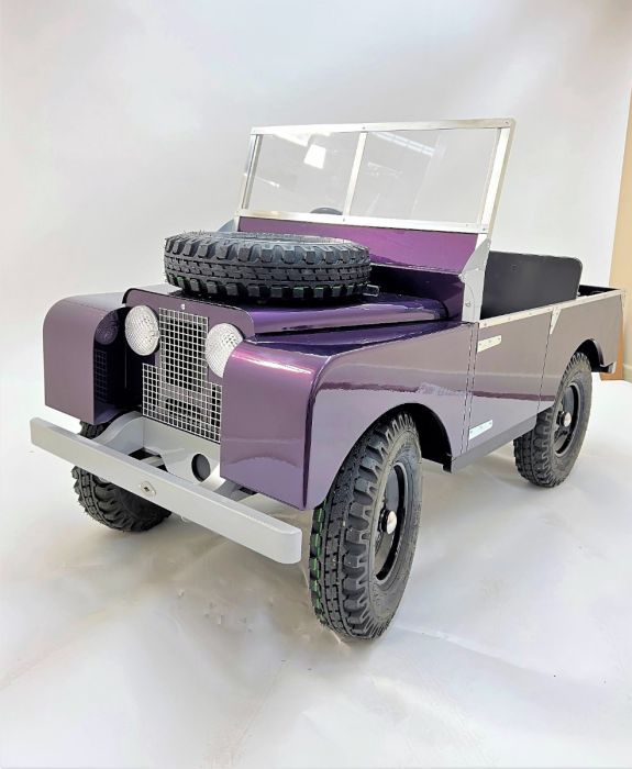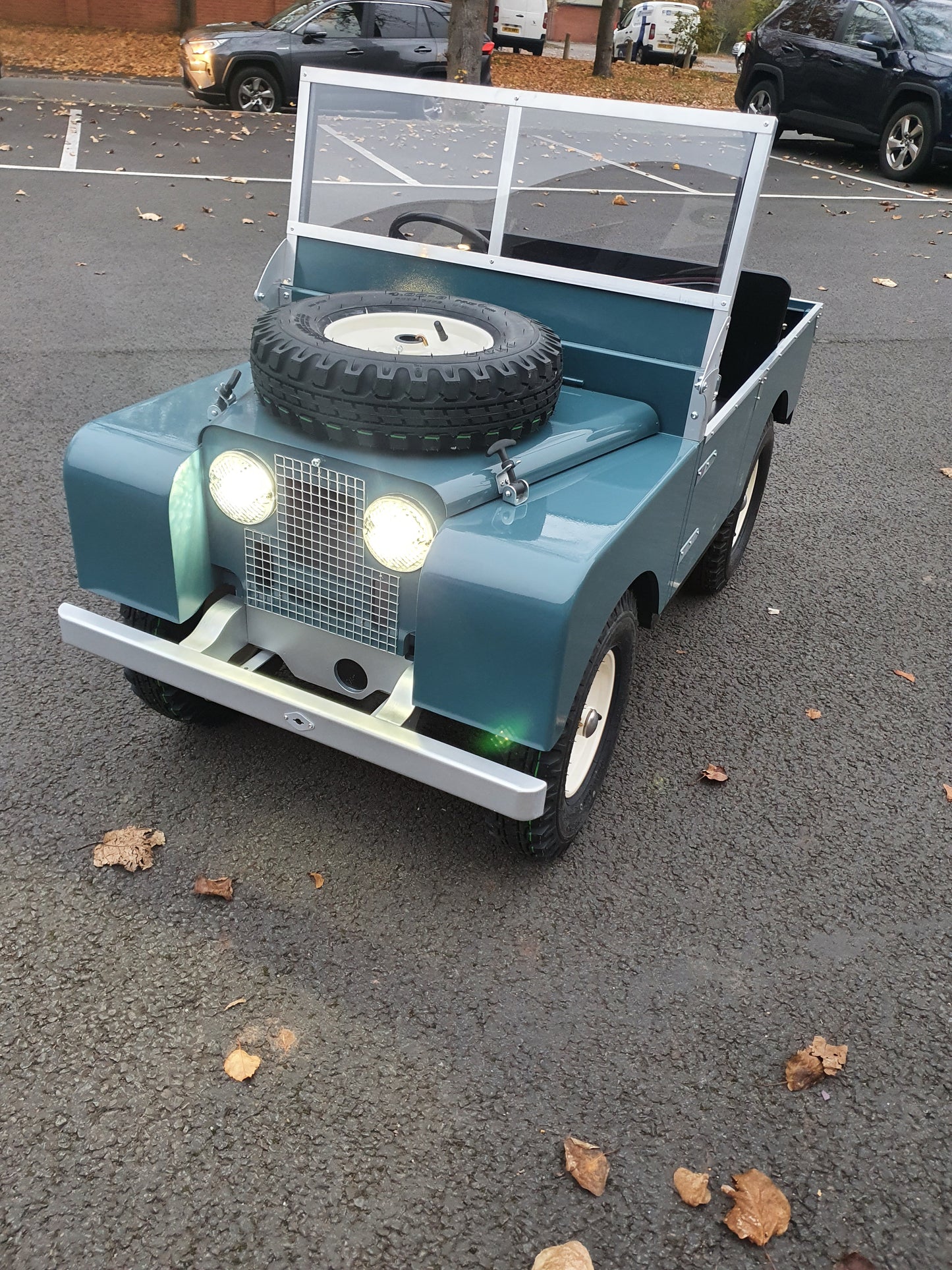 Our faithful tribute is packed with realistic features to delight your learner driver, including forward/reverse gears, speed control, brake, lights, folding windscreen, opening tailgate, pneumatic tyres and horn. The tough monocoque body is spacious enough for one adult and two children, with a safe top speed of 5mph/8kph. Size; 1.6m long x 72cm wide, weight 110kg. Power 24v, 2x12v batteries. Automatic brake and throttle speed control. Number plates of your choice.