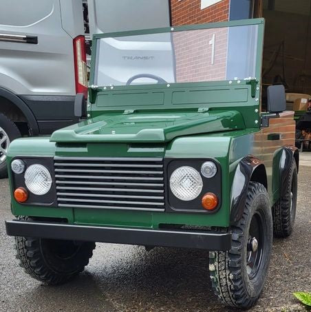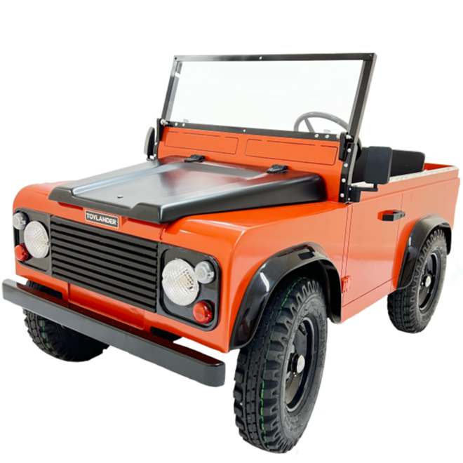 Originally manufactured in 1984, the Land Rover® Ninety is recreated by Toylander for today’s adventurers. Our replica children’s Land Rover® Ninety gives first-time drivers a taste of real-world motoring, with an authentic spec that includes forward/reverse modes, speed control, footbrake, handbrake, lights, folding windscreen, opening tailgate, pneumatic tyres and horn. Wheel arches, mirrors and a tow bar. The tough monocoque body has room for one adult and two children, with a safe top speed of 5mph/8kph. Vehicle size approx. 1.6m x 78cm wide x 70cm high. Seat 2-3 children depending on size.