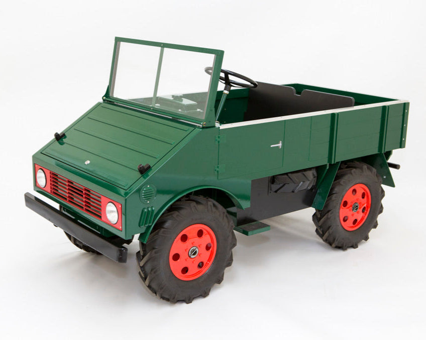Your Toylander Unihog will arrive fully built, painted and ready for the road. Ready built cars include 24v motor, 2 batteries, charger, spare wheel, number plates (chosen by you) and your choice of colour. 5mphr controlled throttle speed.